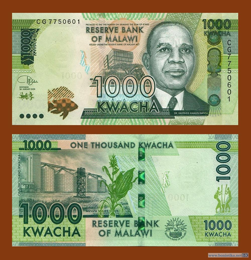 Резервный банк Малави (Reserve Bank of Malawi) выпустил в наличное обращение тираж денежных знаков номиналом 1 000 малавийских квача образца 2020 года.