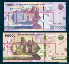 Центральный банк Республики Узбекистан (O'zbekiston Respublikasi Markaziy banki) опубликовал пресс-релиз с подробным описанием банкнот номиналом 50 000 и 100 000 узбекских сумов нового поколения. Информация размещена на официальном сайте ведомства https://cbu.uz/