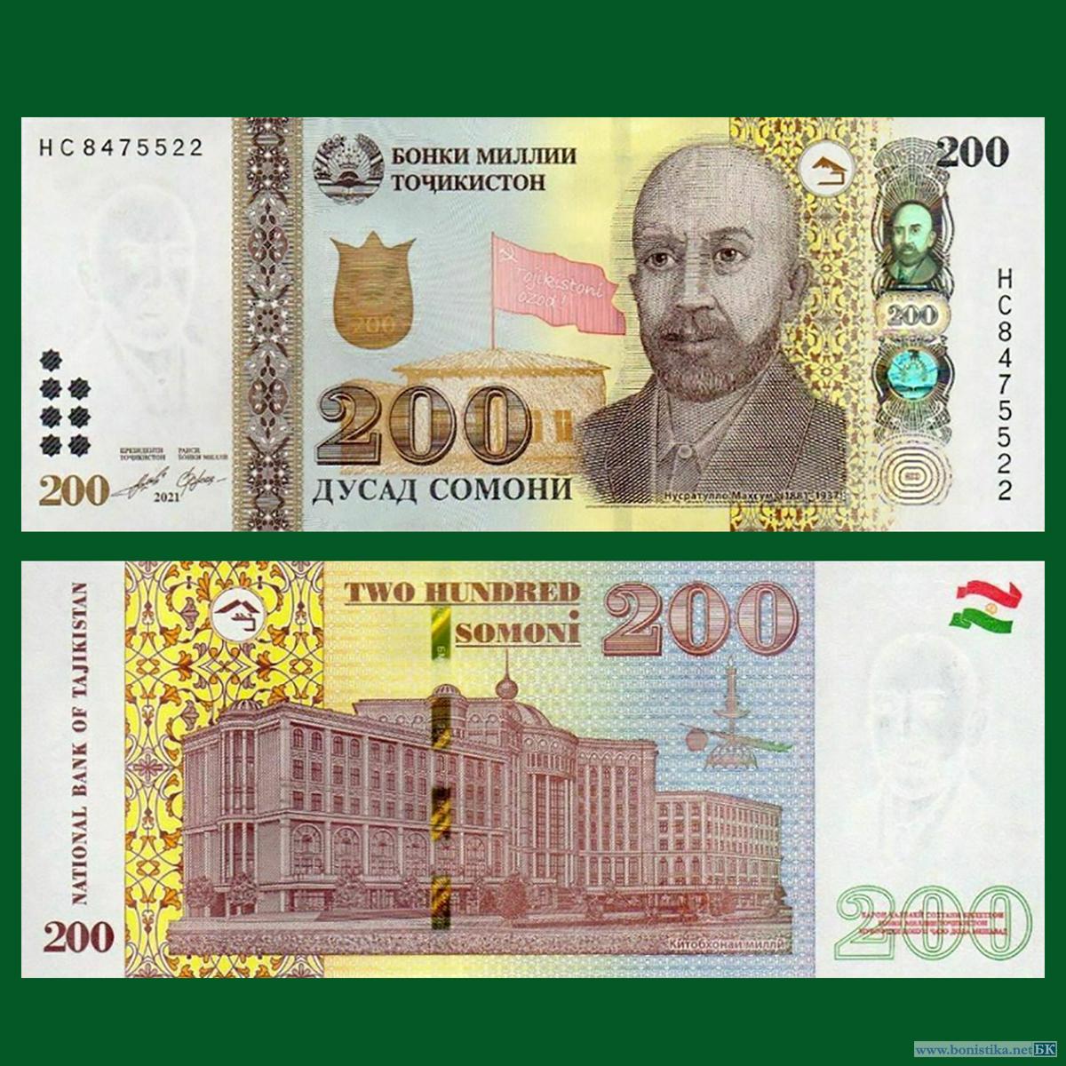 После выпуска в обращение денежных знаков номиналом 100 сомони с измененным дизайном реверса Национальный банк Таджикистана (Бонки миллии Тоҷикистон) приступил к эмиссии обновленных банкнот номиналом 200 сомони образца 2018 года.
