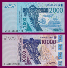 Центральный банк государств Западной Африки (Banque Centrale des États de l'Afrique de l'Ouest, BCEAO) выпустил в обращение новые тираж банкнот номиналом 2 000 и 10 000 франков КФА BCEAO (franc CFA BCEAO). Уже подтверждено их наличие в денежном обращении.