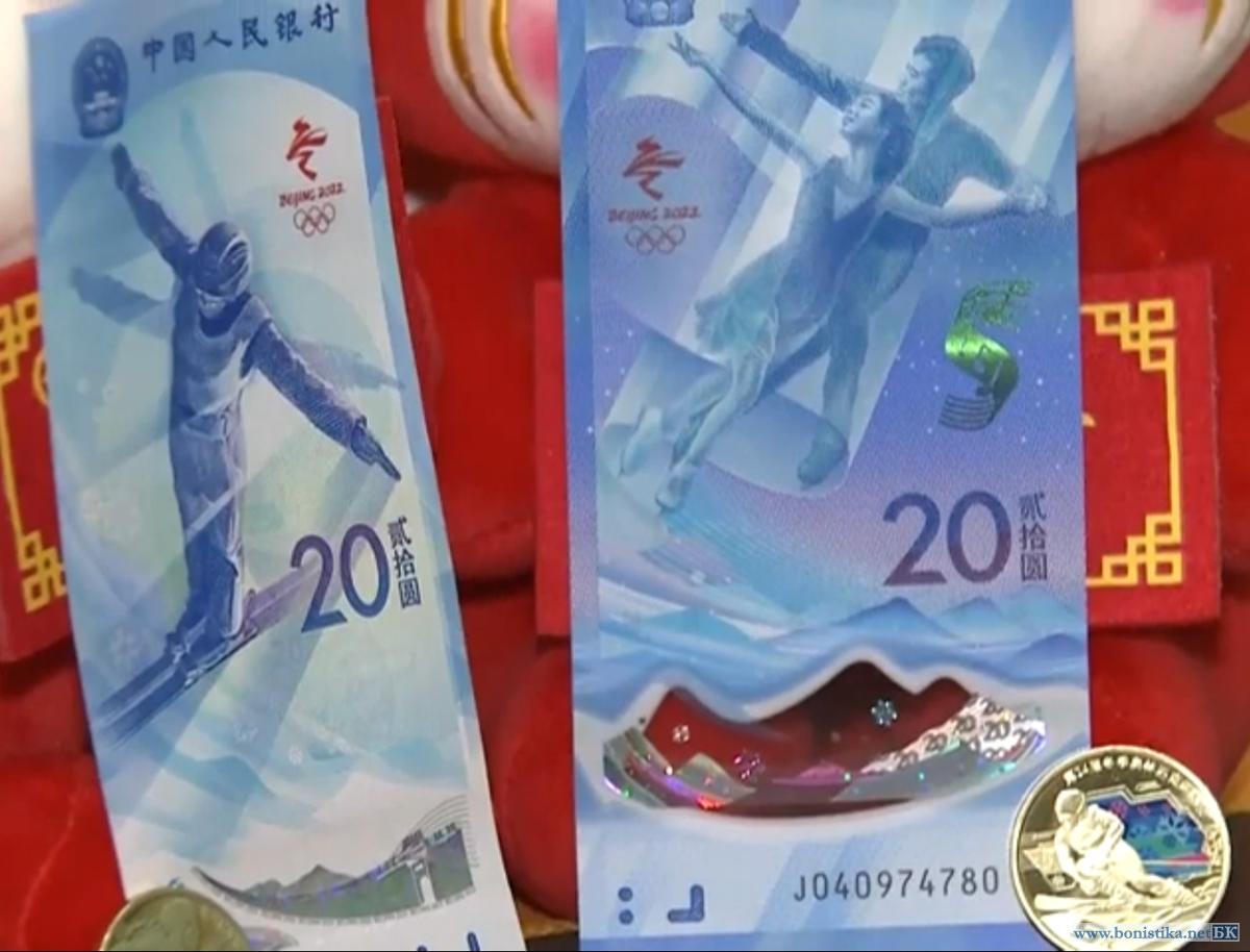Напомним, что накануне открытия Олимпийских Игр Народный банк Китая (中国人民银行, Zhōngguó Rénmín Yínháng) выпустил две памятные банкноты номиналом 20 юаней. На полимерной купюре изображена пара фигуристов и спортивный центр «Ледяной куб». На бумажном денежном знаке поместили лыжника и Национальный центр прыжков с трамплина.