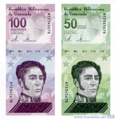 Ранее в обращение были выпущены купюры номиналом 5, 10 и 20 цифровых боливаров (Bolivar Digital).