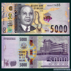 Резервный банк Малави (Reserve Bank of Malawi) выпустил в обращение денежные знаки номиналом 5 000 малавийских квача. Это самый крупный номинал банкнот, находящихся в наличном обороте страны.