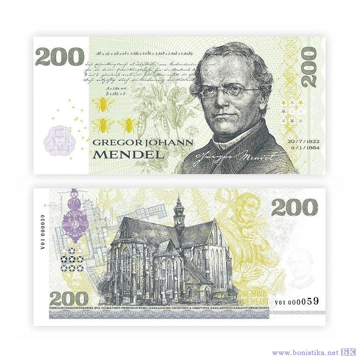 В честь 200-й годовщины со дня рождения аббата Грегора Иоганна Менделя (Gregor Johann Mendel, 1822-1884 гг.) компания České dukáty в сотрудничестве с Společně, o.p.s., Státní tiskárnou cenin, s.p., Tiskárnou Impéria и оргкомитетом юбилейных торжеств выпустила банкнотоподобный сувенир "Paměťovka Gregor Johann Mendel 200 let".