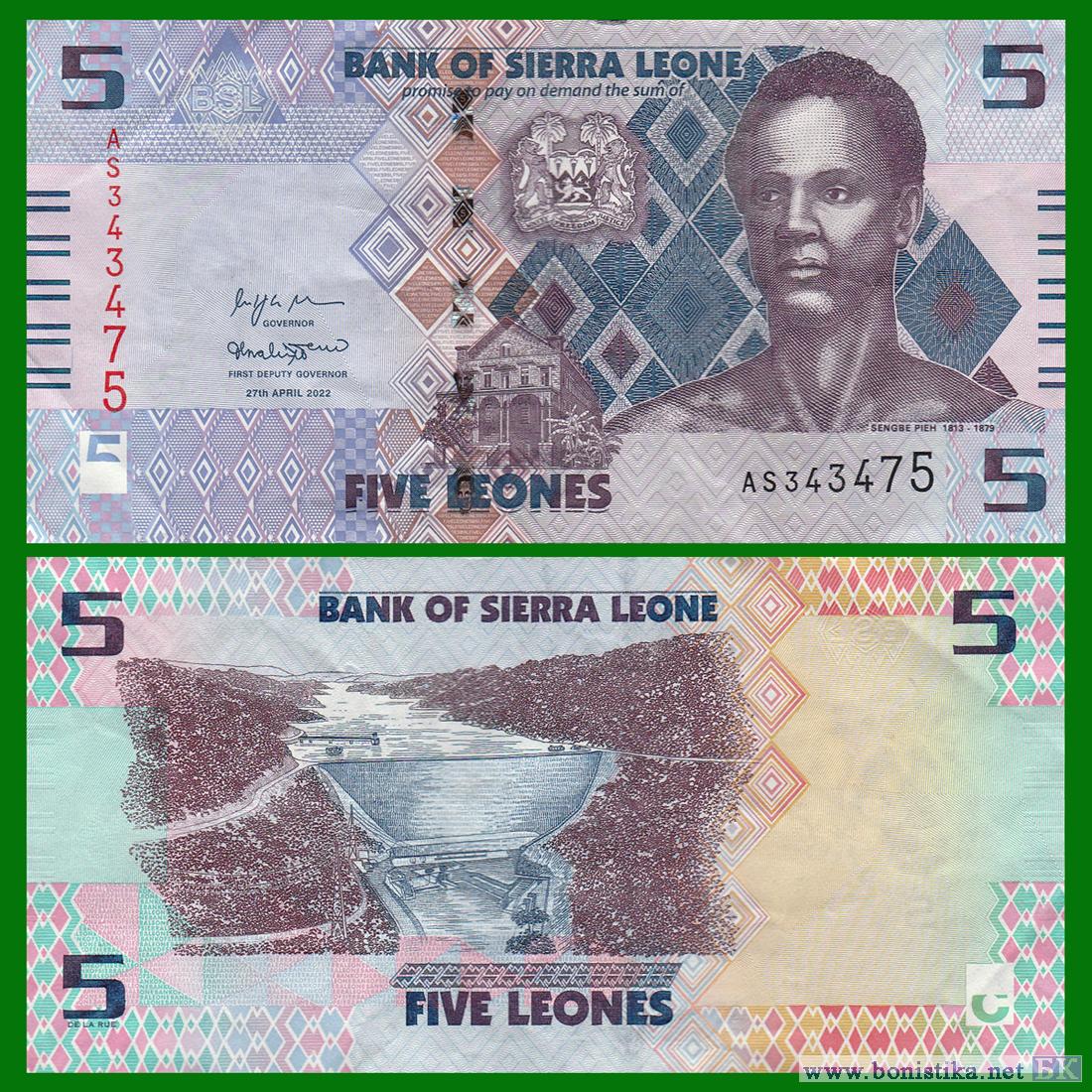 В оформлении купюр номиналом 1, 5 и 10 леоне использованы элементы дизайна банкнот номиналом 1 000, 5 000 и 10 000 леоне образца 2010 года. Денежные знаки датированы 27 апреля 2022 года (27th APRIL 2022).
