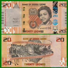 Для купюры номиналом 20 леоне разработан новый дизайн. На лицевой стороне купюры изображена Констанс Каммингс-Джон (Constance Cummings-John, 1918-2000), педагог и политик из Сьерра-Леоне. Она была первой женщиной в Африке, вступившей в муниципальный совет, а в 1966 году стала первой женщиной на посту мэра Фритауна.