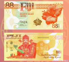 Купюра с номиналом 88 центов будет законным платежным средством в Республике Фиджи. Ее размер 156 х 76 мм. Имеются все признаки денежного знака (номинал, эмитент, факсимиле подписи губернатора госбанка), а также защита от подделывания (сегментированная полоса с цветопеременным эффектом, видимое в ультрафиолете изображение, защитный элемент OVI, высокая печать).