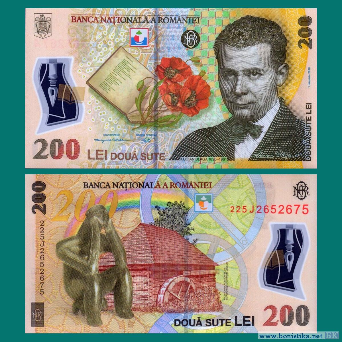Национальный банк Румынии (Banca Naţională a României, DNR) выпустил в обращение новый тираж полимерных банкнот номиналом 200 леев образца 2018 года. Купюры датированы 2022 годом, дата зашифрована в двух первых цифрах серийного номера, отпечатанного на оборотной стороне денежного знака.