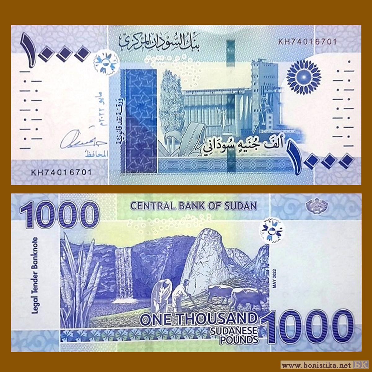 Центральный банк Судана (بنك السودان المركزى, Central Bank of Sudan) выпустил в обращение новый тираж денежных знаков номиналом 1 000 суданских фунтов образца 2019 года. Новые банкноты датированы 2022 годом.