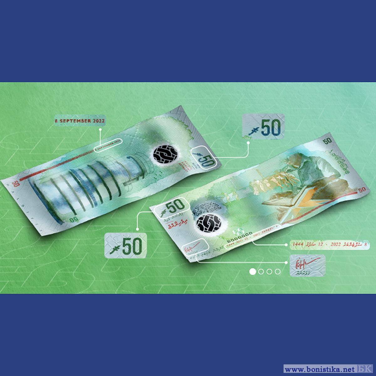 Мальдивское управление денежного обращения (Maldives Monetary Authority, ММА) перевыпускает банкноты номиналом 50 руфий с дизайном серии 2015 года и обновленными данными. Информация об этом опубликована на сайте управления www.mma.gov.mv