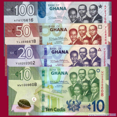 Банк Ганы (Bank of Ghana) выпустил в обращение новые тиражи банкнот четырех номиналов. Денежные знаки 10, 20, 50 и 100 седи серии 2019 года выпущены с новой датой.
