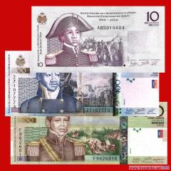 Банк Республики Гаити (Bank Repiblik Dayiti, Banque de la République d'Haïti) выпустил в обращение несколько купюр серии 2004 года с обновленными данными.