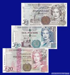 В обращение поступили обновленные банкноты номиналом 5, 10 и 20 фунтов стерлингов Гернси (States of Guernsey) с новыми защитными элементами.