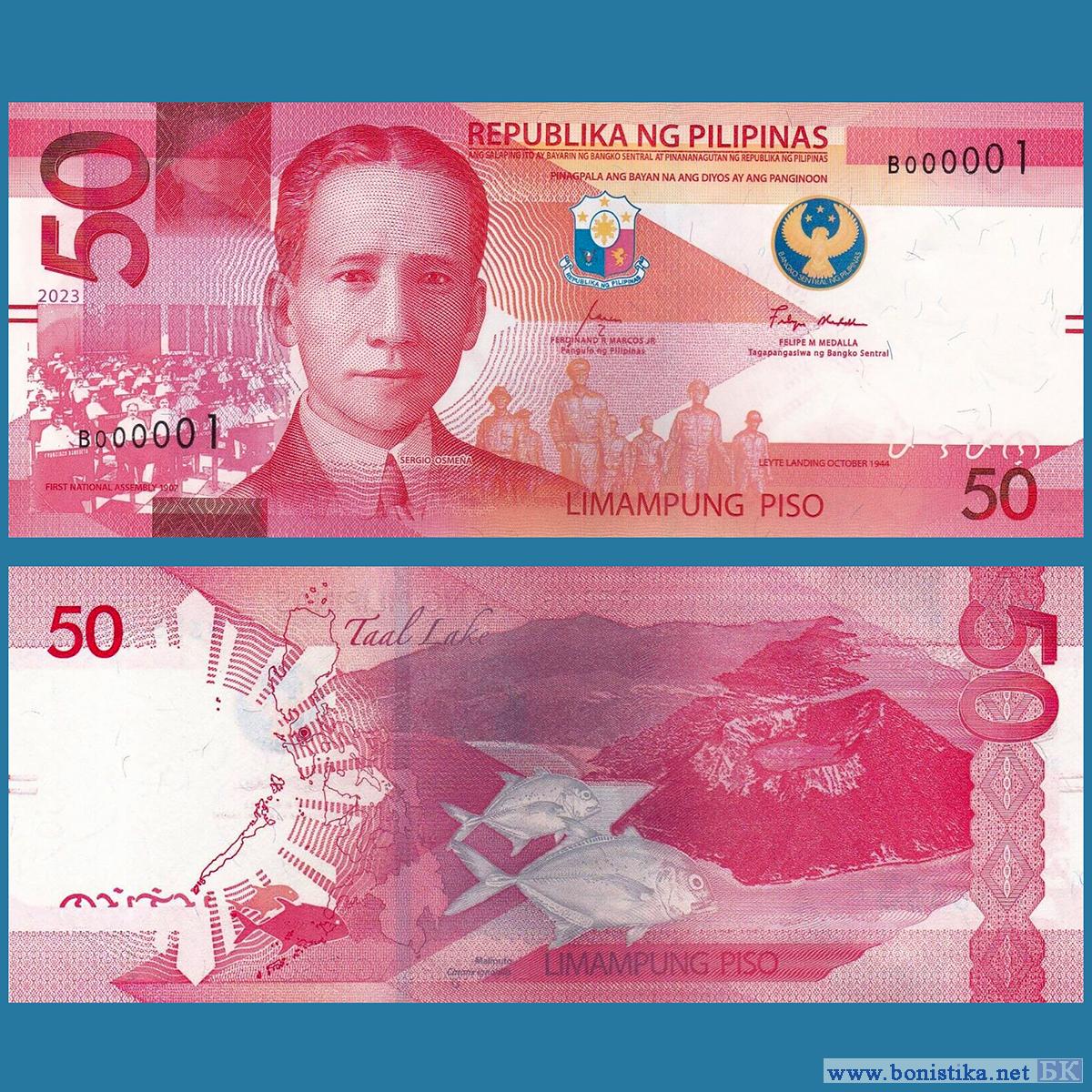 Центральный банк Филиппин (Bangko Sentral ng Pilipinas) выпустил в обращение денежные знаки номиналом 50 филиппинских песо серии 2022 года. Банкнота продолжает серию "New Generation Currency (NGC) - Seal Type 7", выпуск которой начат в минувшем году.