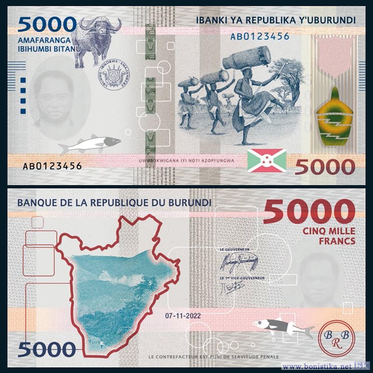 Банк Республики Бурунди (Banque de la Republique du Burundi) сообщил, что выпускает в обращение банкноты номиналом 5 000 и 10 000 бурундийских франков образца 2022 года с обновленным дизайном. Сообщение об этом опубликовано на сайте банка www.brb.bi
