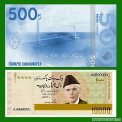 А в Пакистане социальные сети обсуждают выпуск денежного знака номиналом 10 000 пакистанских рупий. Причина в высокой инфляции, которая продолжается в этой стране. Но администрация Государственного банка Пакистана (بینک دولت پاکستان, State Bank of Pakistan) , в отличие от своих турецких коллег, сразу же заявила, что подобная информация не имеет под собой никаких оснований. Об этом пишет издание www.thenews.com.pk