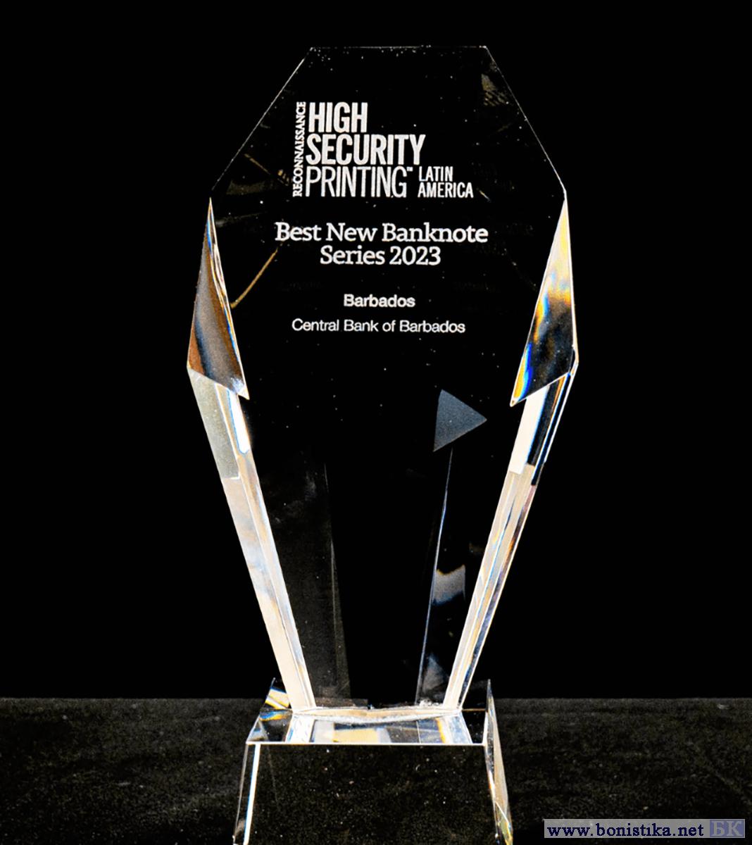 Приз за лучшую серию банкнот, представленную в 2022 году, получил Центральный банк Барбадоса (Central Bank of Barbados).