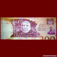 Центральный банк Лесото (Central Bank of Lesotho, Banka e Kholo ea Lesotho) выпускает в обращение коммеморативную банкноту номиналом 200 малоти. Она, как сообщает портал mriguide.com со ссылкой на ЦБ Лесото, посвящена 60-й годовщине со дня рождения правящего монарха короля Летсие III (Letsie III).