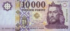 Венгерский национальный банк (Magyar Nemzeti Bank) выпустил в обращение новый тираж бумажных денежных знаков номиналом 10 000 форинтов образца 2014 (2019) года.