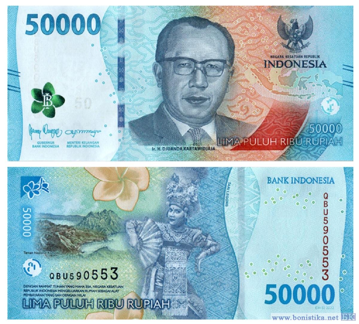 Подтвержден новый выпуск денежных знаков номиналом 50 000 индонезийских рупий образца 2022 года (серия "Национальные Герои"). Они датированы 2023 годом, дата выпуска отпечатана на оборотной стороне (Peruri TC 2023).