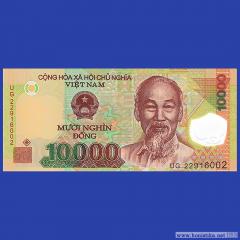 Государственный банк Вьетнама (Ngân hàng Nhà nước Việt Nam) выпустил в обращение новый тираж полимерных банкнот номиналом 10 000 донгов образца 2006 года.