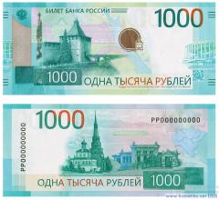 Купюра 1 000 рублей посвящена Нижнему Новгороду и Приволжскому федеральному округу. Основное изображение лицевой стороны — Никольская башня Нижегородского кремля, на оборотной стороне отображены Музей истории государственности татарского народа и Республики Татарстан в Казани, башня Сююмбике на территории Казанского кремля, Музей археологии и этнографии в Уфе.