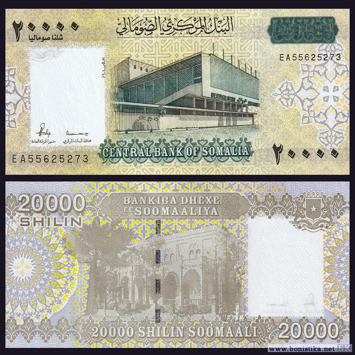 Опубликовано изображение денежного знака номиналом 20 000 сомалийских шиллингов из так называемой "суданской серии" банкнот выпуска 2010 года. Напомним, что ранее стало известно о существовании банкнот номиналом 10 000 и 50 000 сомалийских шиллингов этого семейства.