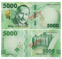 Национальный банк Кыргызской Республики (Кыргыз Республикасынын Улуттук банкы) сообщил, что с 10 мая 2024 года вводит в обращение банкноту номиналом 5 000 кыргызских сомов новой пятой серии национальной валюты образца 2023 года. Описание новой купюры опубликовано на сайте банка www.nbkr.kg/