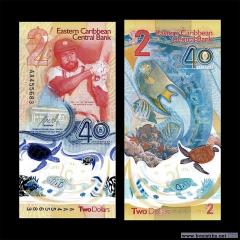 На оборотной стороне вертикальной банкноты изображены рыбы, кораллы, черепахи и карта островов. Центральный банк выбрал этот дизайн как символ надежды и вдохновения для жителей Восточно-Карибского валютного союза, а также молодежи и людей во всем мире.