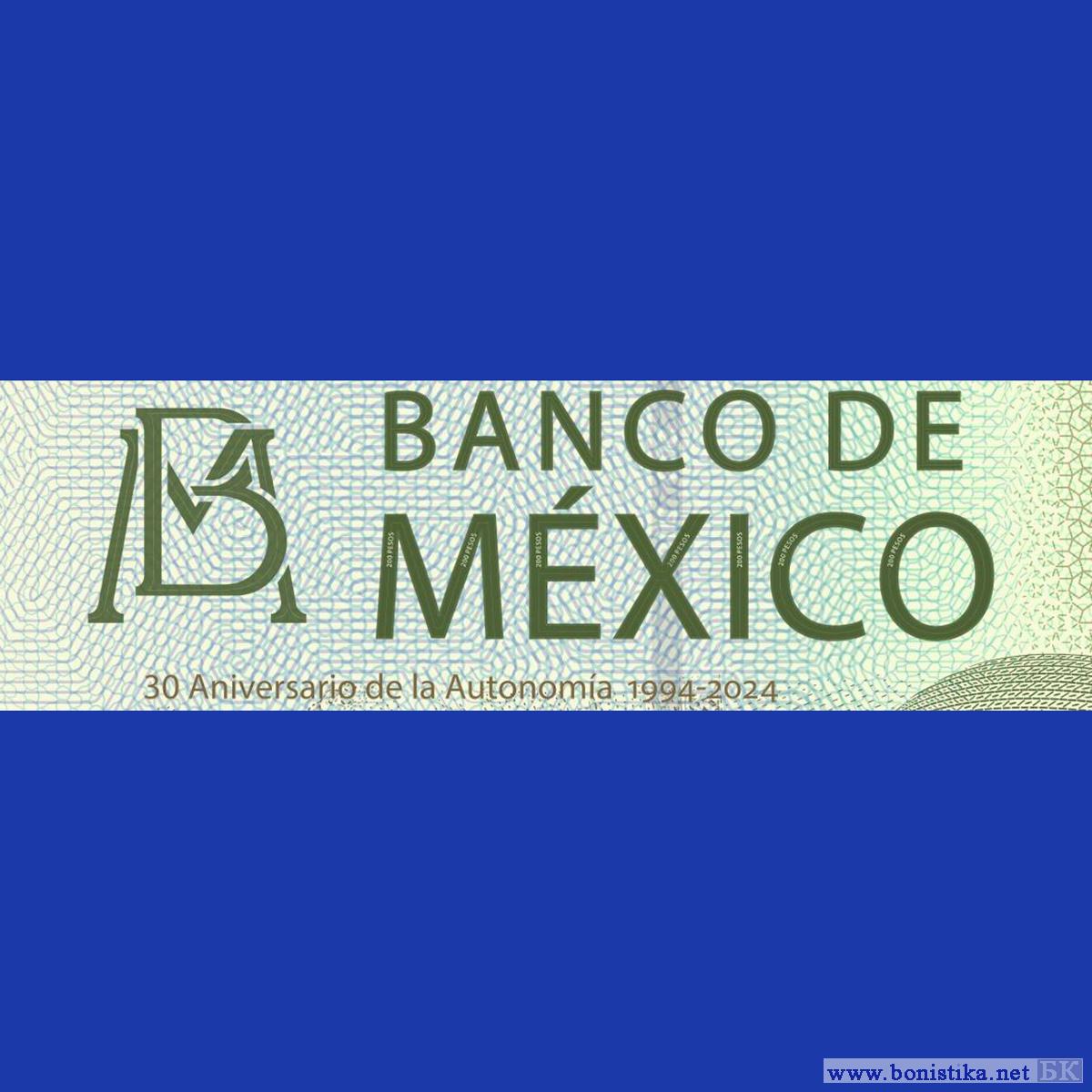 Банк Мексики (Banco de México) объявил, что готовит к выпуску купюру номиналом 200 мексиканских песо, посвященную 30-й годовщине автономии эмиссионного института. Официальное сообщение опубликовано на сайте банка www.banxico.org.mx/