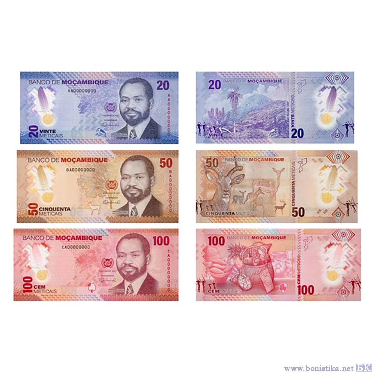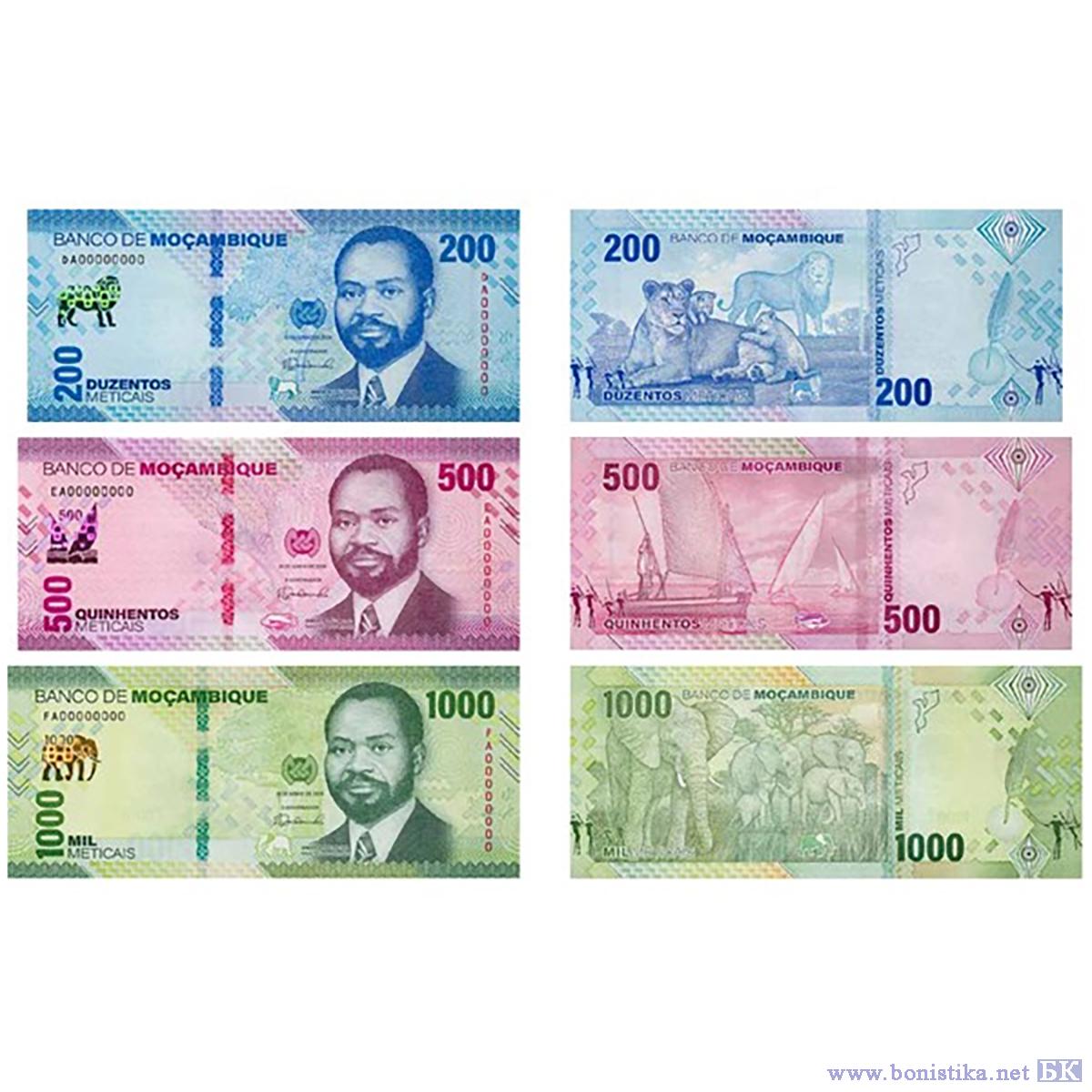 Напомним, что купюры номиналом 20, 50 и 100 метикалей отпечатаны на полимерной основе, а номиналы 200, 500 и 1 000 метикалей - на бумажной основе.