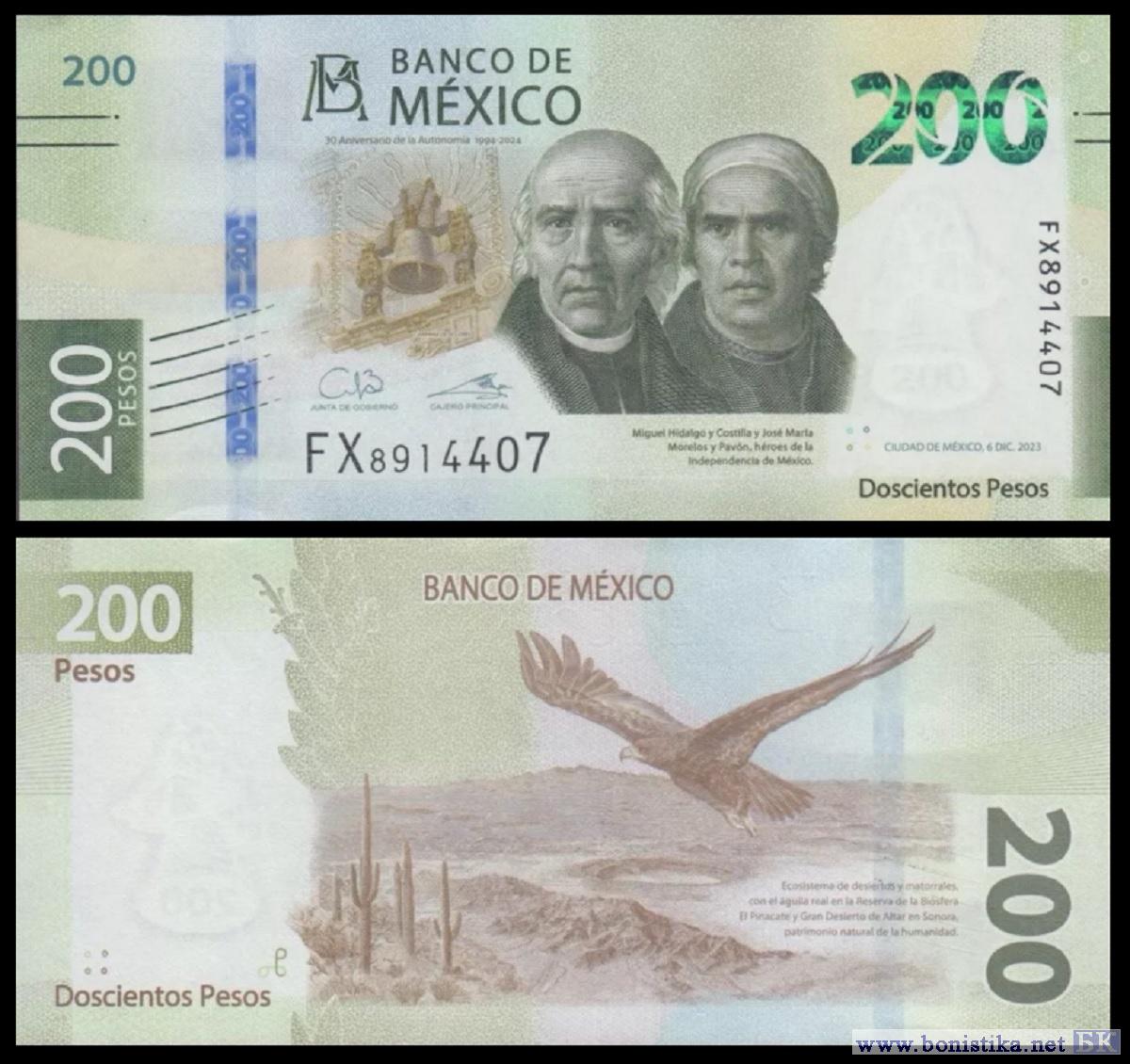 Банк Мексики (Banco de México) выпустил памятную банкноту в честь 30-й годовщины получения автономии банка. Описание денежного знака номиналом 200 мексиканских песо опубликовано на сайте ведомства www.banxico.org.mx/