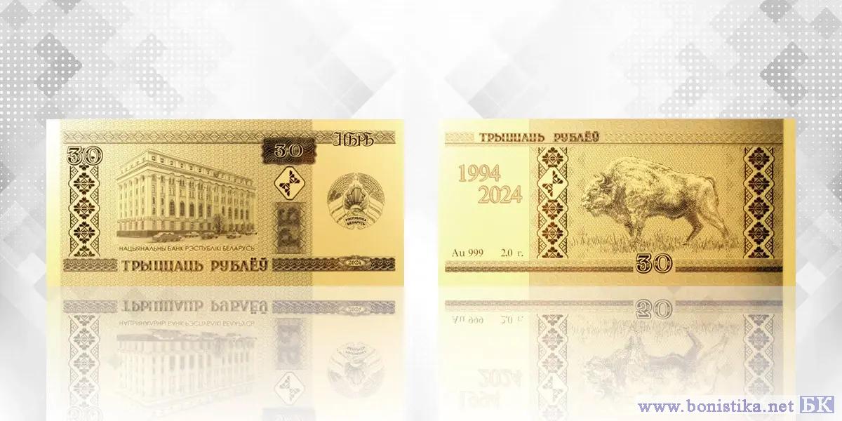 Национальный банк Республики Беларусь (Нацыянальны банк Рэспублікi Беларусь) на минувшей неделе выпустил в обращение памятные монеты в форме банкнот «Беларускі рубель. 30 гадоў» (Беларусский рубль. 30 лет). Об этом сообщает официальный сайт банка www.nbrb.by/.