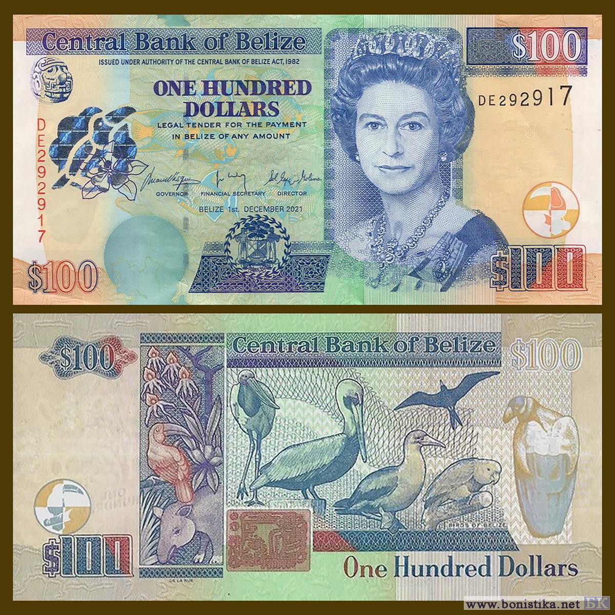 Центральный банк Белиза (Central Bank of Belize) выпустил в наличное обращение новый тираж банкнот номиналом 100 долларов Белиза образца 2003 года.