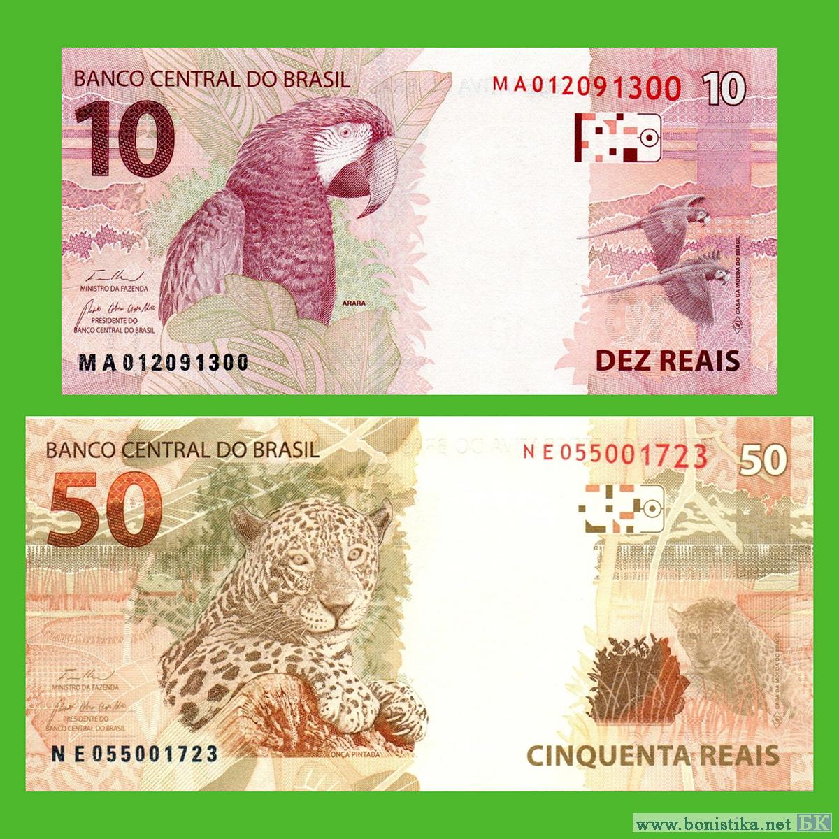 Центральный банк Бразилии (Banco central do Brasil) выпустил в обращение новые тиражи банкнот номиналом 2, 5, 10 и 50 реалов образца 2010 года. На купюрах изменена подпись министра финансов республики.