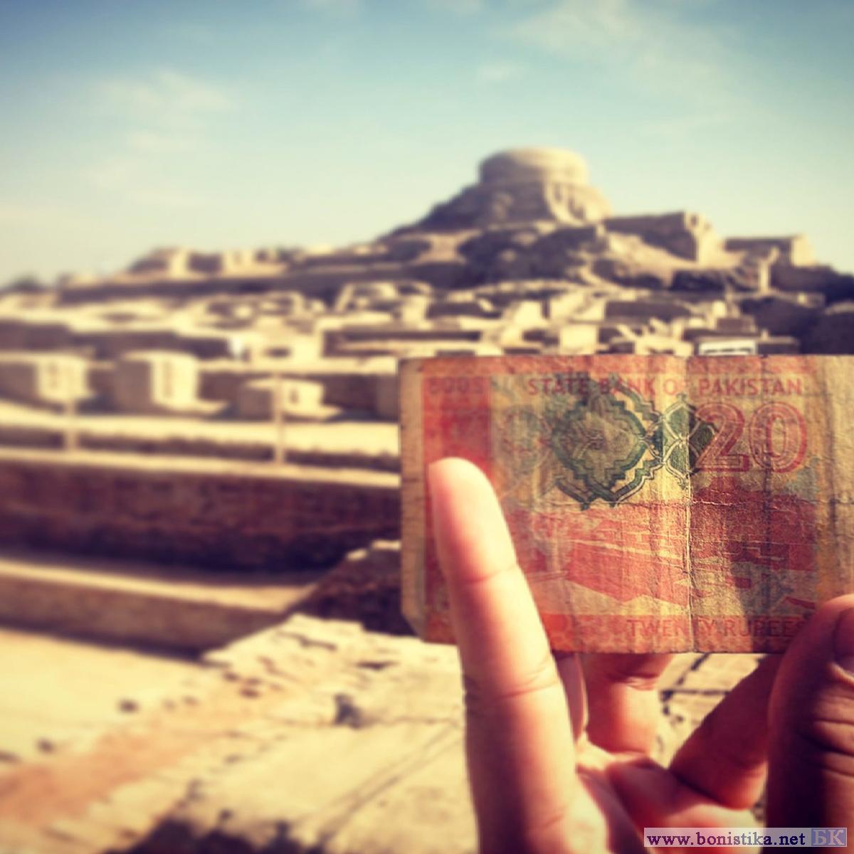 Напомним, что Мохенджо-Даро изображен на обиходной купюре 20 рупий образца 2007 года. Мохенджо-Даро — город цивилизации долины Инда, возникший около 2600 года до н. э. Расположен в Пакистане, в провинции Синд. Является крупнейшим древним городом долины Инда и одним из первых городов в истории Южной Азии.