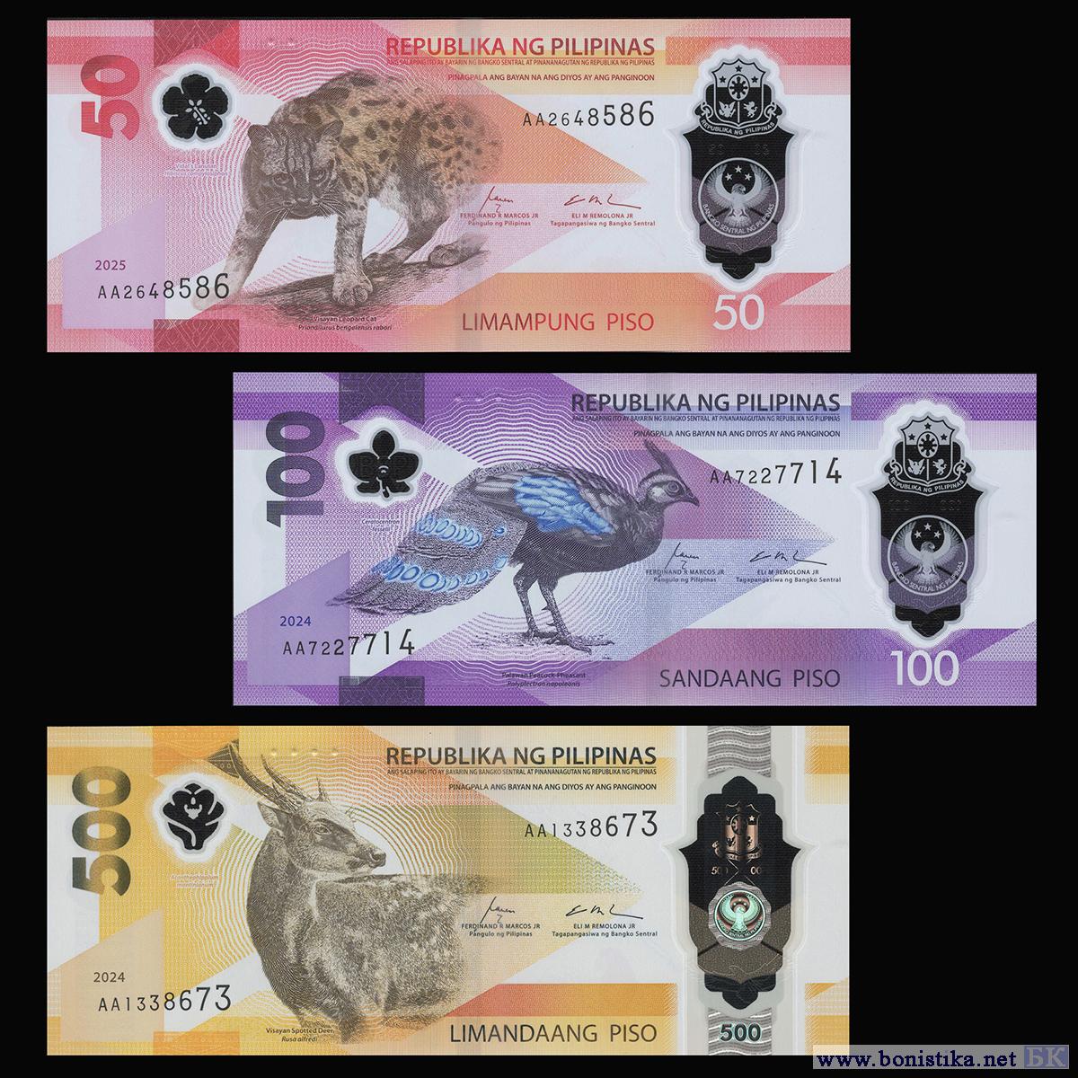 В наличное денежное обращение поступили первые банкноты новой серии, о выпуске которых Центральный банк Филиппин (Bangko Sentral ng Pilipinas, BSP ) сообщал ранее. Дизайн серии посвящен фауне и флоре этого государства, что вызвало критику со стороны местных политиков и общественных деятелей.