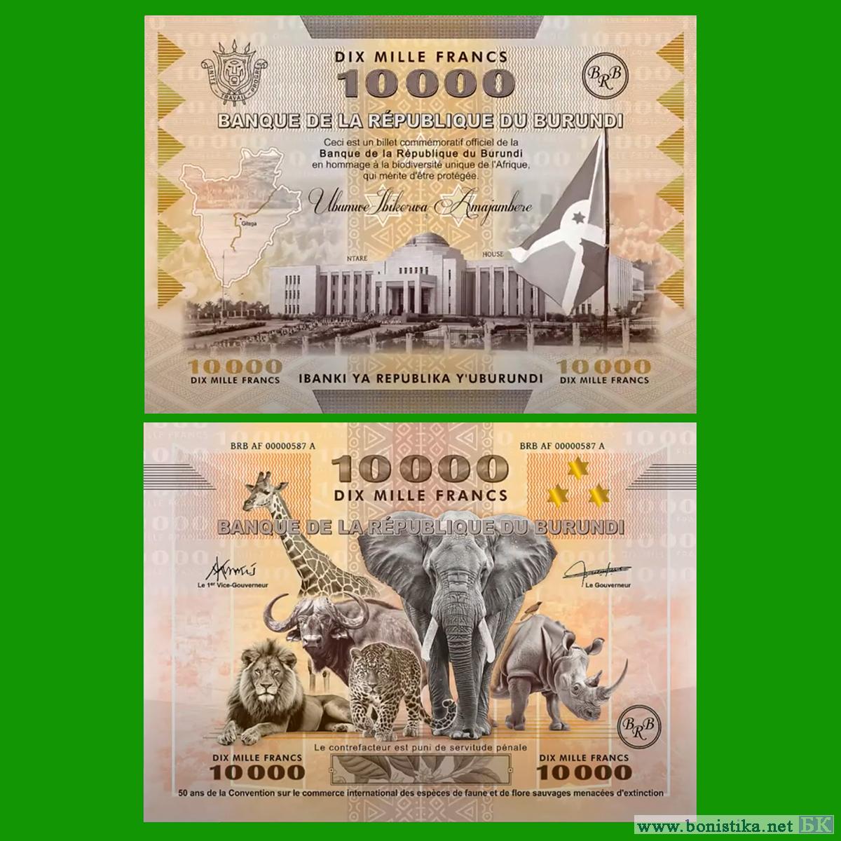 Коммерциализация бонистики растет и ширится. В прямом смысле. Опубликовано изображение недатированной банкноты номиналом 10 000 бурундийских франков, названной самой большой купюрой современности.
