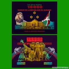 Памятные купюры изготовлены немецкой компанией Mietens & Partner GmbH по заказу Банка Республики Бурунди (Banque de la République du Burundi, Ibanki ya Republika y'Uburundi). Денежный знак имеет все признаки подлинных бумажных денег, его размеры - 400 x 288 мм. Тираж составляет 1 000 экземпляров, отпускная цена - 2 000 евро за штуку.