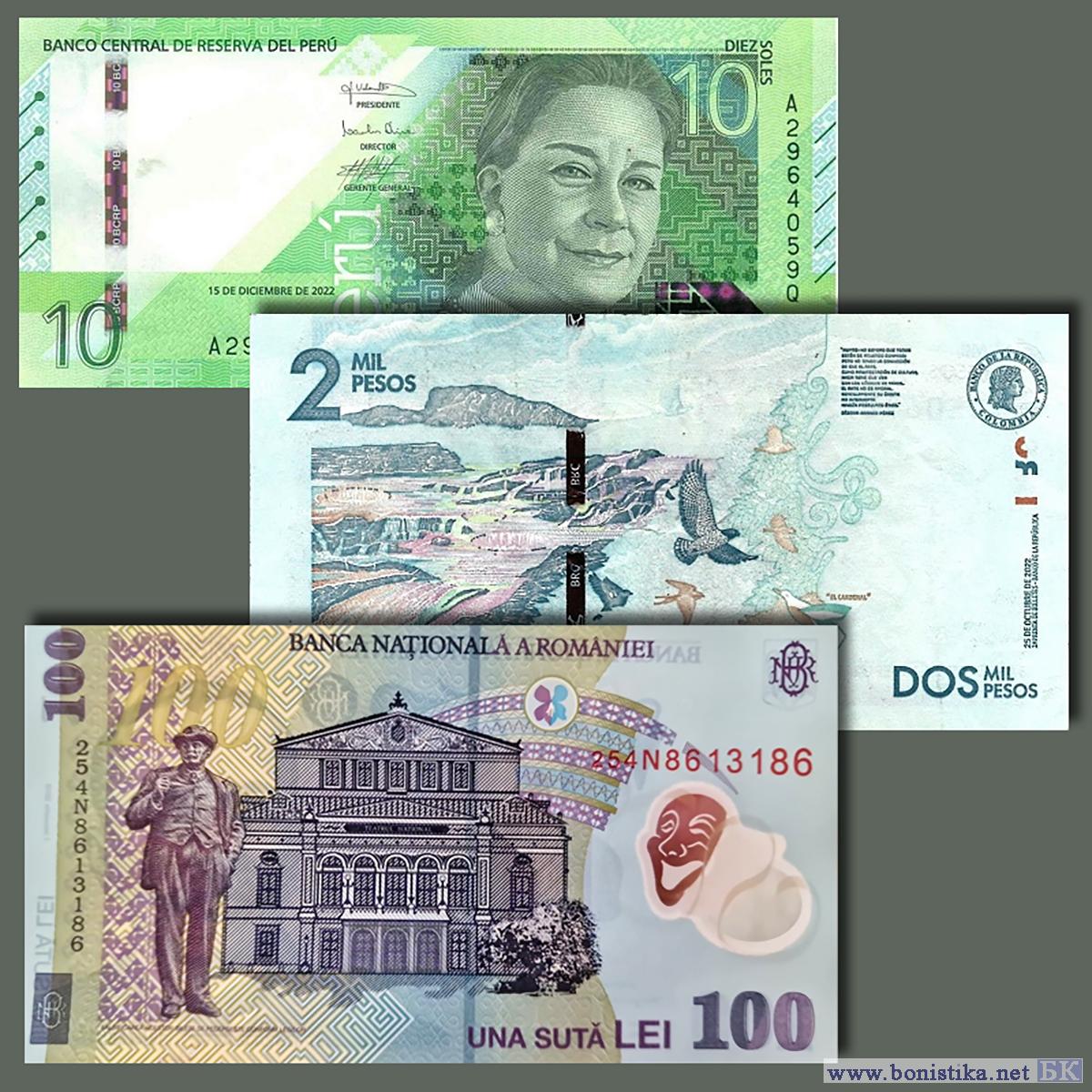 - колумбийского Банка Республики (Banco de la República), выпустившего новый тираж купюр 2 000 песо образца 2015 года с датой "25 октября 2022 года" (25 DE OCTUBRE DE 2022).