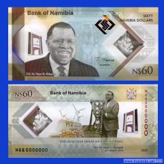 Банк Намибии (Bank of Namibia) представил общественности дизайн памятной банкноты номиналом 60 намибийских долларов 2025 года. Купюра посвящена памяти покойного премьер-министра и президента страны Хаге Готфрида Гейнгоба (Hage Gottfried Geingob, 1941-2024 гг.).