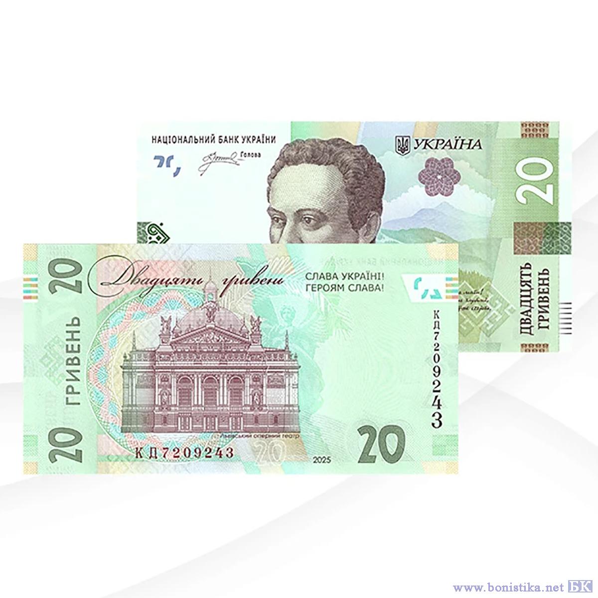 Национальный банк Украины (Національний банк України) в рамках планового выпуска с 21 августа 2025 вводит в обращение модифицированные банкноты номиналом 20 гривен.