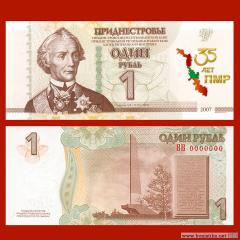 Формат, общий дизайн и технические характеристики памятной банкноты соответствуют находящейся в обращении банкноте номиналом 1 рубль образца 2007 года модификации 2012 года, с нанесением в правом поле лицевой стороны банкноты специальной маркировки в виде выполненного в цветах флага Приднестровской Молдавской Республики картографического изображения территории Приднестровской Молдавской Республики и расположенной справа надписи в три строки «35 ЛЕТ ПМР».