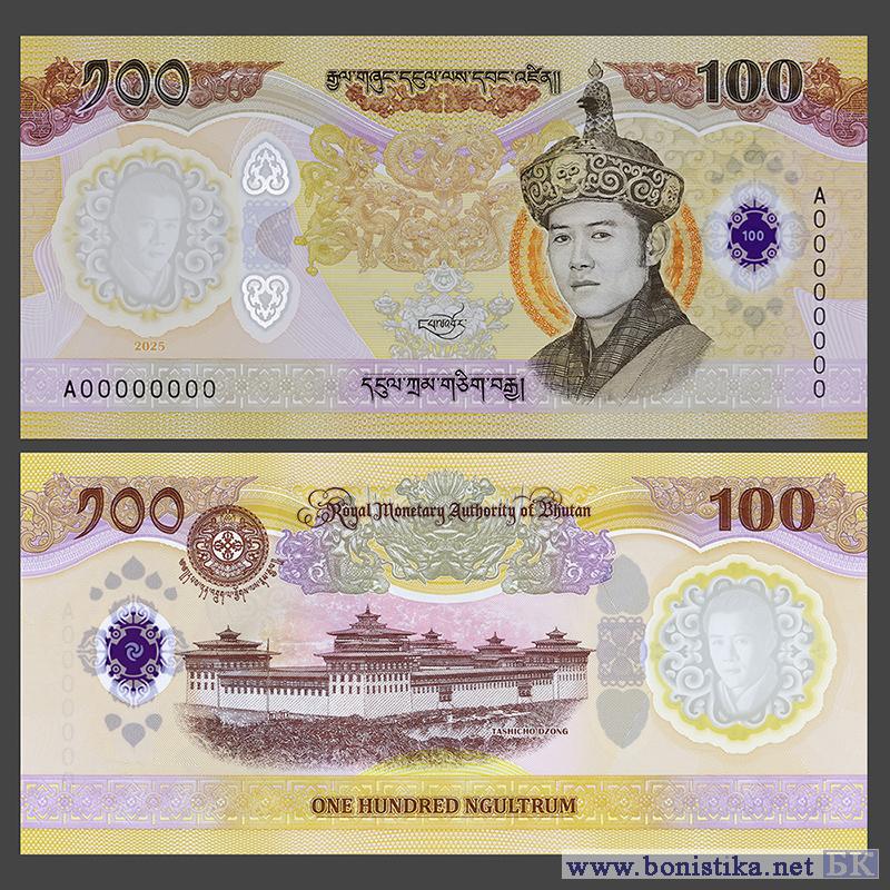 - 100 нгултрум 2025 года, тема банкноты "Прославление настоящего правления";