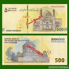 Иранские СМИ сообщают со ссылкой на правительственный портал республики, что Центральный банк Исламской Республики Иран (بانک مرکزی جمهوری اسلامی ایران) приступает к эмиссии иранских чеков номиналом 5 000 000 риалов.