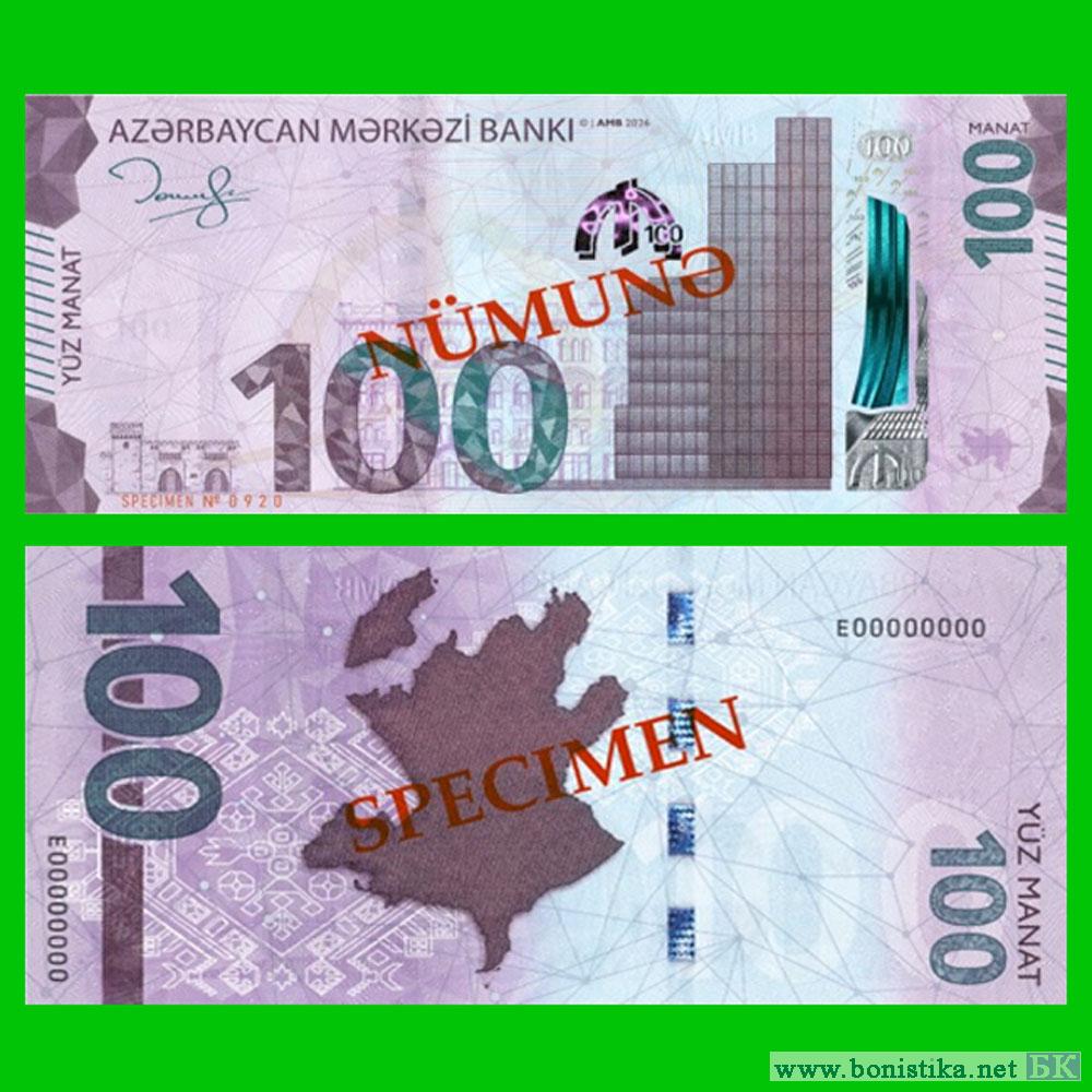 Центральный банк Азербайджанской Республики (Azərbaycan Respublikasının Mərkəzi Bankı) сообщил, что с 15 июля 2026 года выпускает в обращение купюру номиналом 100 манатов образца 2026 года.