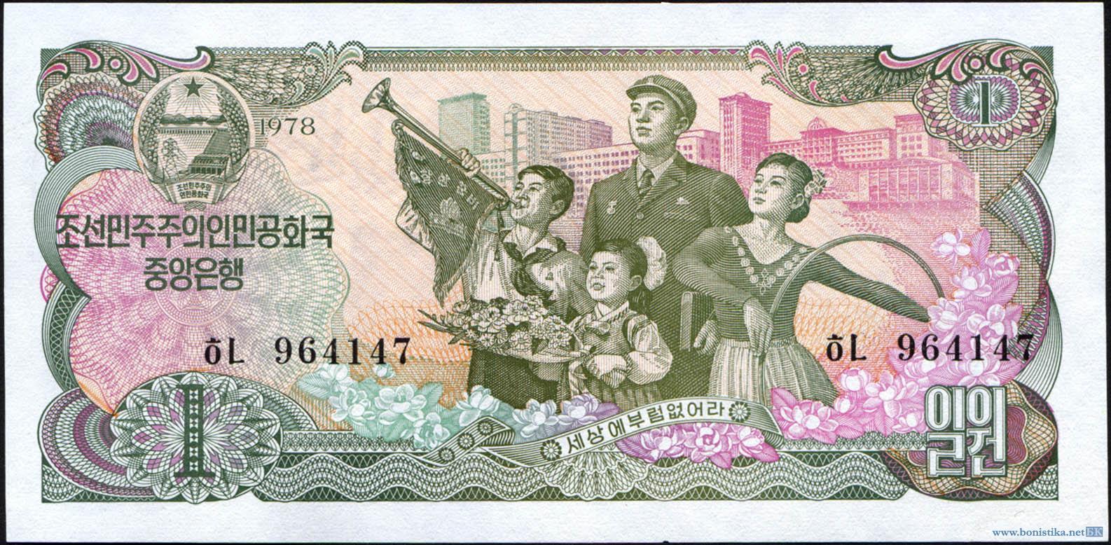 Корея Северная, 1978, 1 вон, зеленая печать