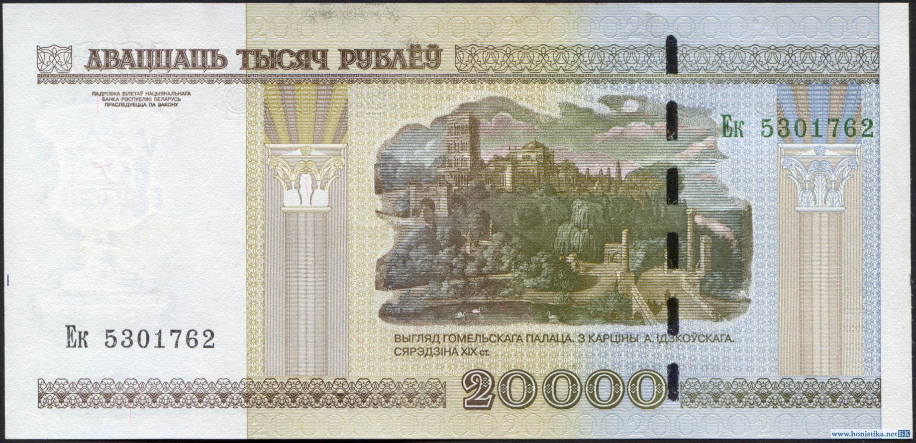 Беларусь, 2011, 20000 рублей с прерывистой защитной нитью