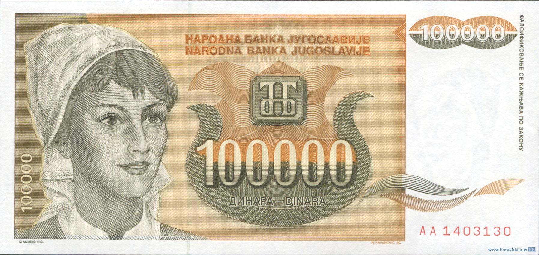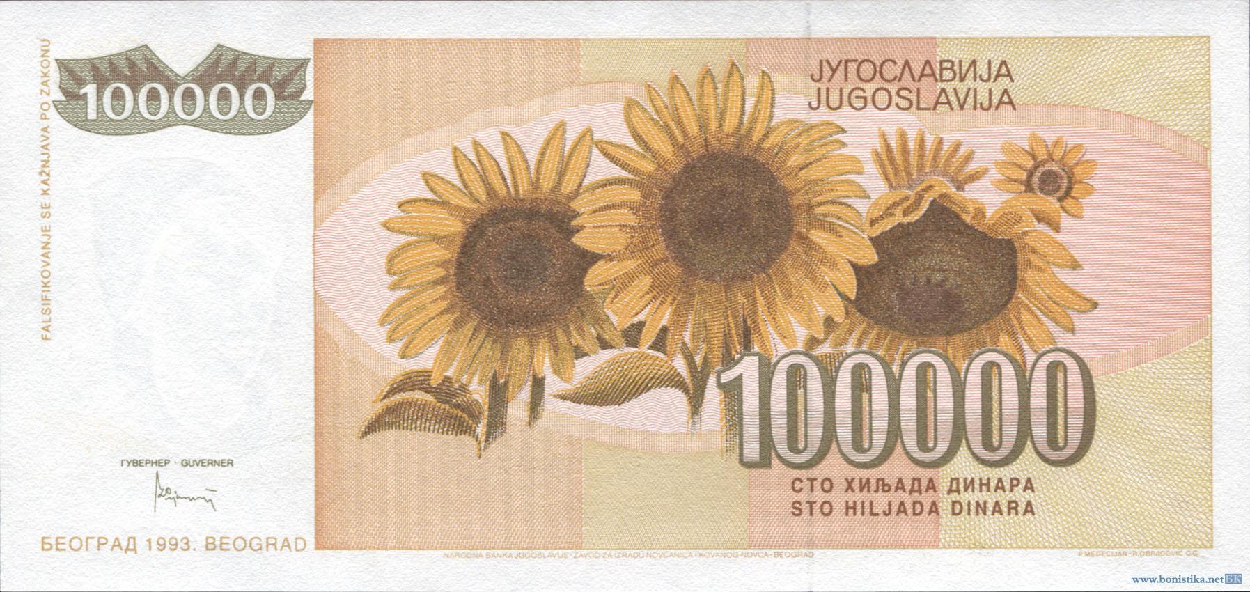 Югославия, 1993, 100000 динаров