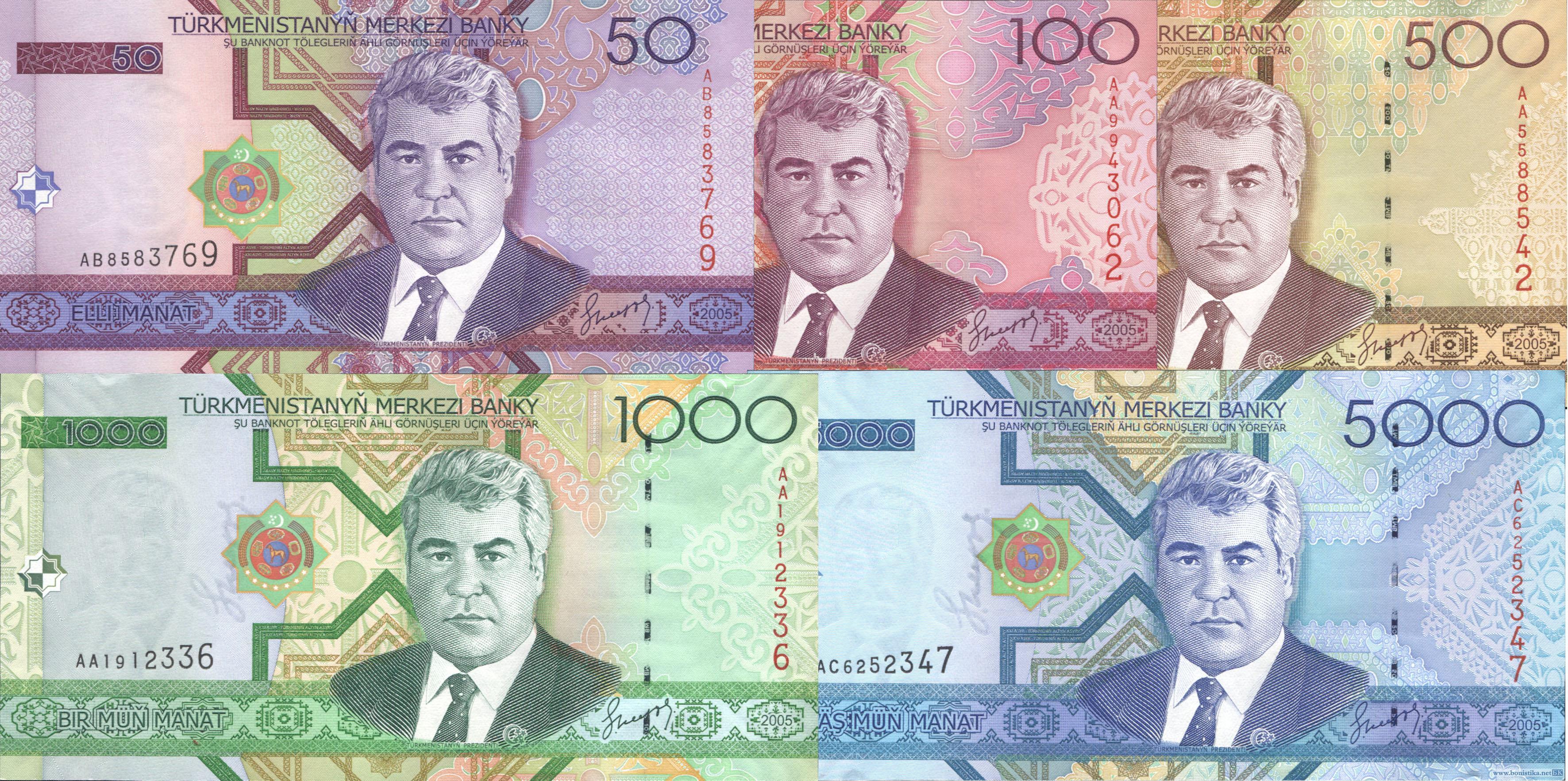 Туркменистан, 2005, Набор 50, 100, 500, 1000, 5000 манатов